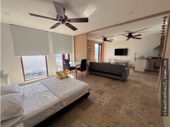 ApartaSuite en el Centro Histórico de Santa Marta. Con su ubicación privilegiada está suite tiene una habitación con baño interno su sala comedor y cocina espaciosa. Un plus de esta propiedad es su parqueadero que por la zona es bastante apetecido. El edificio cuenta con dos piscinas y turcos