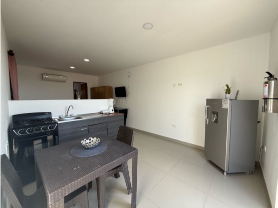 Se arrienda Apartaestudio amoblado en zona tranquila y residencial del Rodadero, Santa Marta. El apartaestudio cuenta con cocina, cama, closet, baño y un espacio en la parte de la terraza comunitaria para poner su propia lavadora en caso de que la necesite.