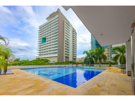 Se vende apartamento de ultimo piso en edificio QB (residencial), ubicado a una calle de la playa, detras del Hilton de Bello Horizonte. Tiene 3 habitaciones, 4 baños completos, sala, comedor, balcones con vista al mar y vista a la Sierra Nevada. Cuenta con 2 parqueaderos propios.