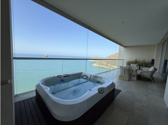 Se vende exclusivo apartamento de 3 habitaciones, 2 baños, cocina, sala, balcon con jacuzzi privado y vista frontal al mar y 2 parqueaderos, ubicado en Cabo Tortuga, Santa Marta.