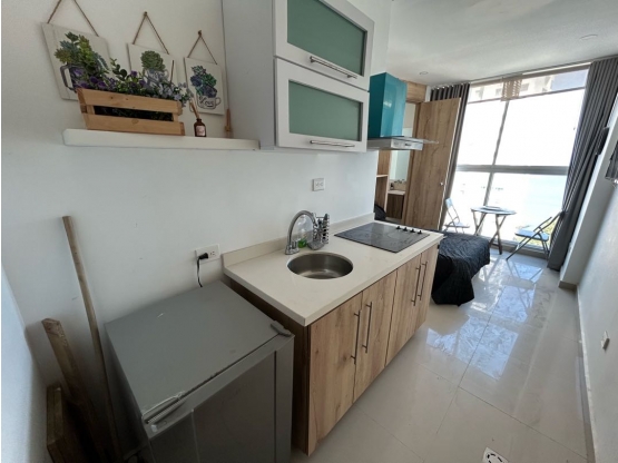 Se vende apartamento en el sector Rodadero Sur en segunda linea de mar, Santa Marta. Tiene 1 habitacion, 1 baño, piso 9 con vista al mar