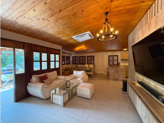 Se arrienda casa remodelada de 4 habitaciones, 4 baños, sala comedor, cocina, terraza, jardín, patio y 2 parqueaderos, ubicada en Conjunto Villas del Palmar. Originalmente eran 2 casas y las mismas fueron unidas en 1.