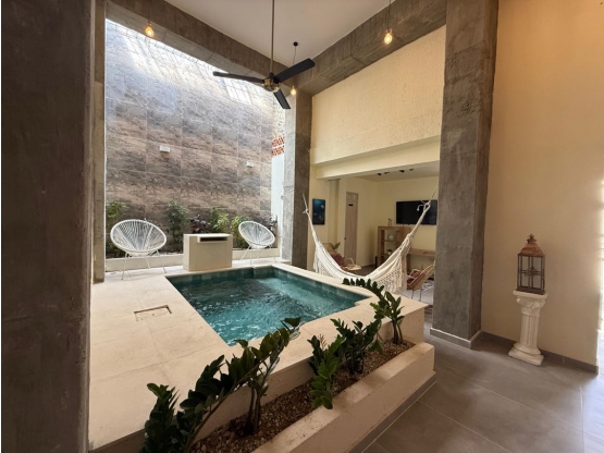 Se vende casa remodelada en Centro Histórico de Santa Marta, con capacidad para 8 personas. La casa tiene piscina, 3 habitaciones (una estilo mezzanine), 2 baños, sala, cocina abierta, área de lavandería, terraza en segundo piso y paneles solares. Tiene estructura para seguir construyendo hacia arriba.